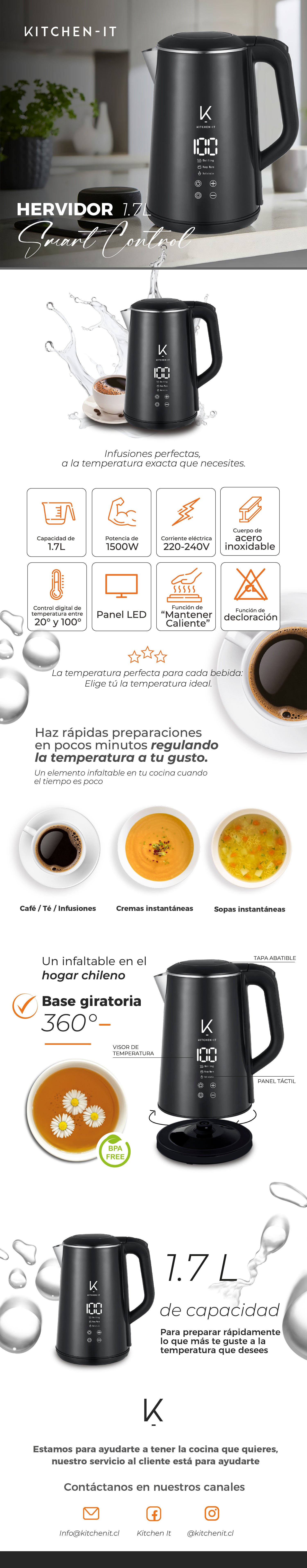 Si buscas precisión, control y tecnología en un solo producto, este hervidor es la elección perfecta. Tú decides la temperatura, nosotros te damos la tecnología para conseguirla.