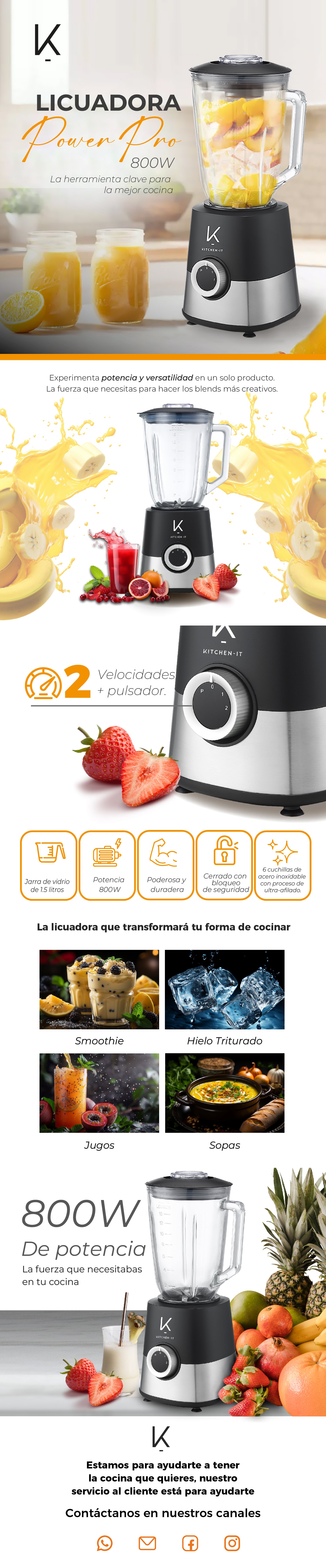 Lleva tu experiencia culinaria al siguiente nivel con la Licuadora Power Pro 800W. ¡Perfecta para quienes buscan practicidad y resultados excepcionales!